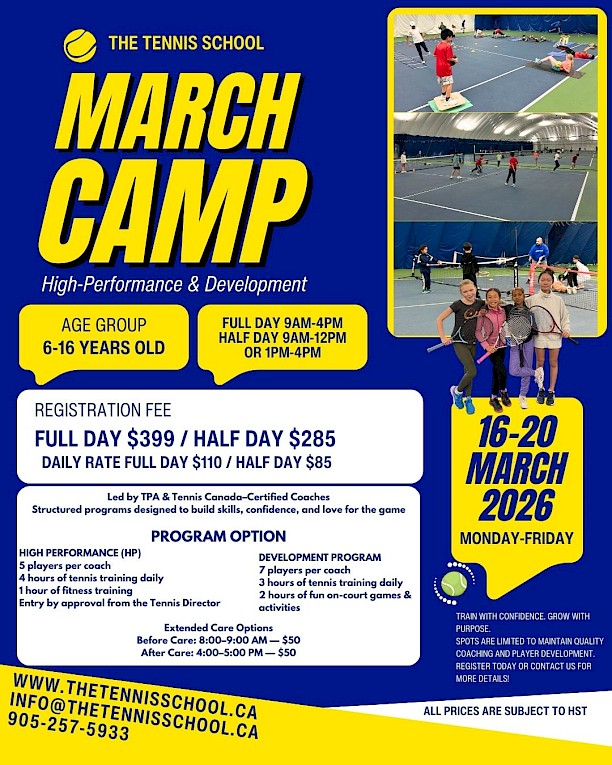 Why settle for a week off when you can serve up a week of active fun? Dive into the world of tennis with our March Break Camp!